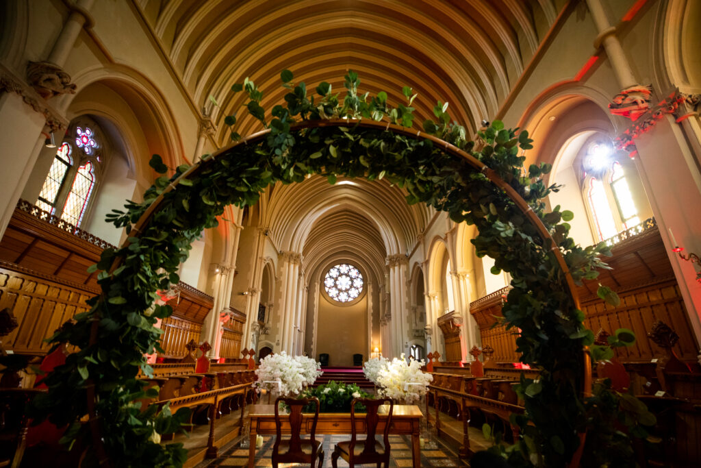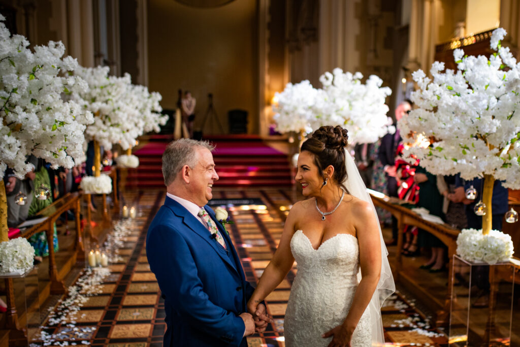 After this we were able to photograph the Abbey in its full awesomeness! I have to give a big massive shout out to secret garden wedding decorations. Wendy and her team are just amazing at their job and every time I am a Stanbrook Abbey wedding photographer, I know that when they are decorating the venue it is going to be a great one to photograph! As you can see here they had trees, an arch, white petals scattered down the aisle, and candles, everything you could want for the perfect wedding ceremony at stanbrook Abbey! I highly recommend looking these guys up if you want top class service for your wedding decorations for the day.
